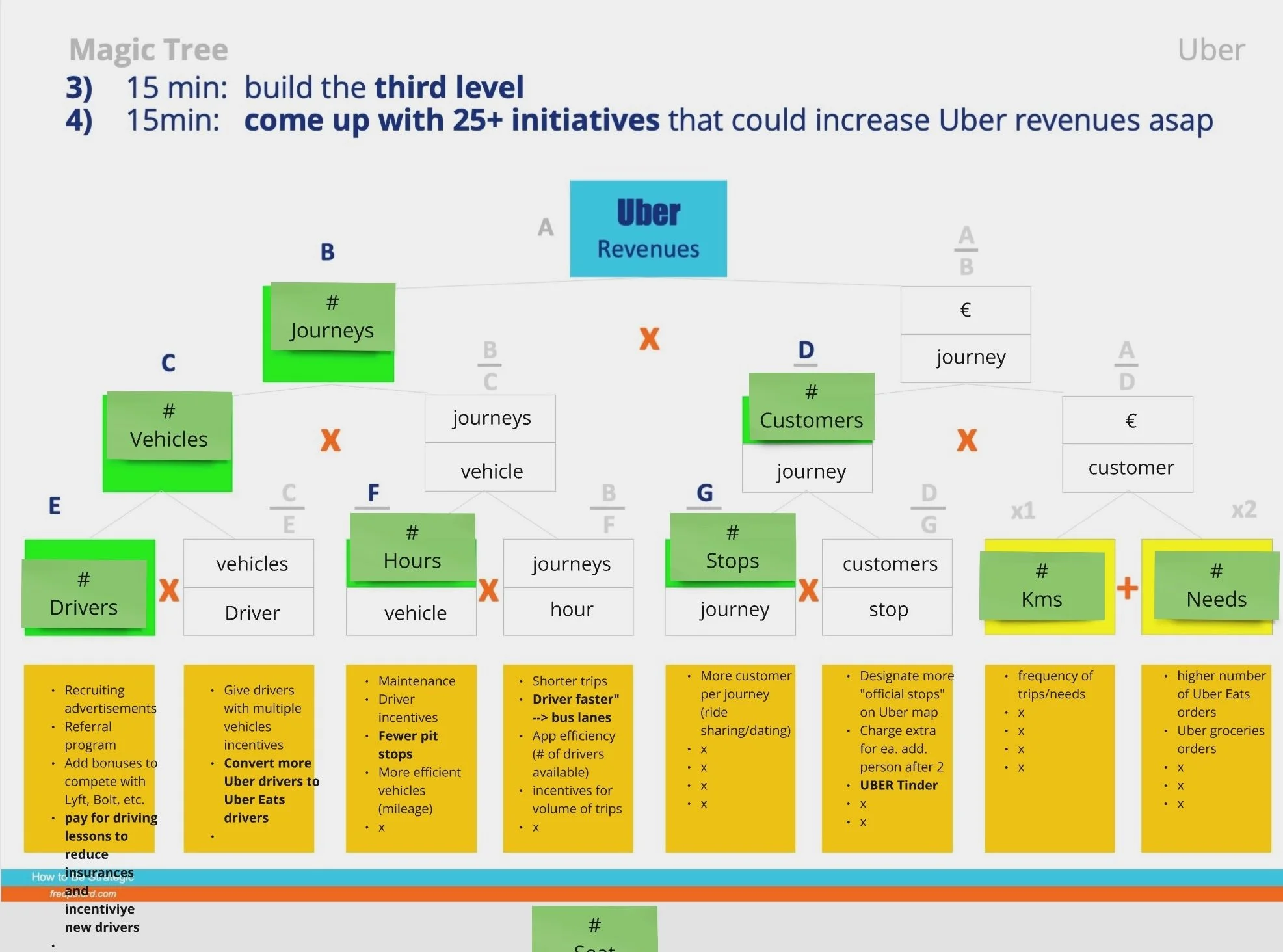 The Magic Tree is a technique for discovering the underlying structure of any quantitative problem, and identifying a dozen possible solutions in the blink of an eye. Scroll the page below to see a few few examples, for Uber revenues in Munich